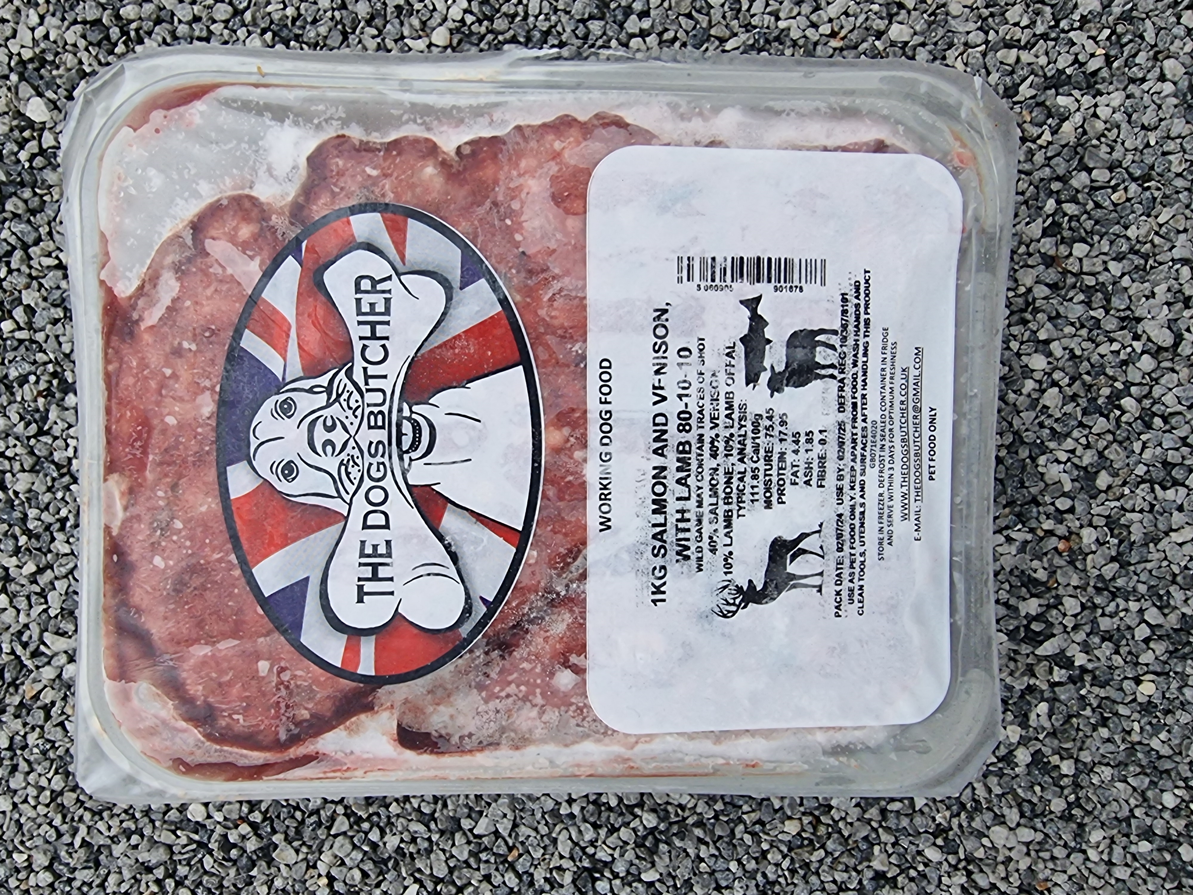 Scottish Salmon with Wild Venison mince 80-10-10 with Lamb Offal